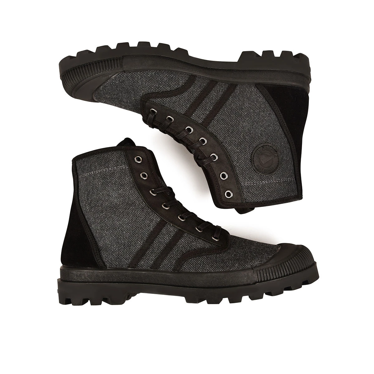 La boots pour homme en toile Authentique se pare cette saison d’un mix matières très élégant et sobre mixant les teintes noires. Cette boots est munie d’une tige en toile robuste et résistante et est mixée avec des touches de cuirs et de suède. Sa semelle crantée est en caoutchouc naturel et est très confortable.