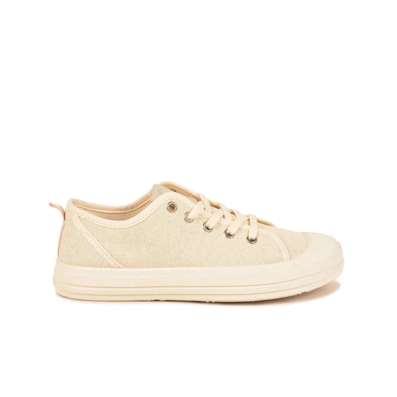 Laissez vous séduire pour la basket basse femme en toile irisée écru. Cette chaussure très originale grâce à sa toile 100% recyclée et son fil lurex coloris écru, montée sur une semelle injectée et en caoutchouc naturel, saura vous apporter confort et légèreté lors de vos balades estivales. Elle s’accordera avec toutes vos tenues de la saison. Petit plus, sa semelle intérieure est amovible donc très pratique si vous souhaitez insérer vos propres semelles.