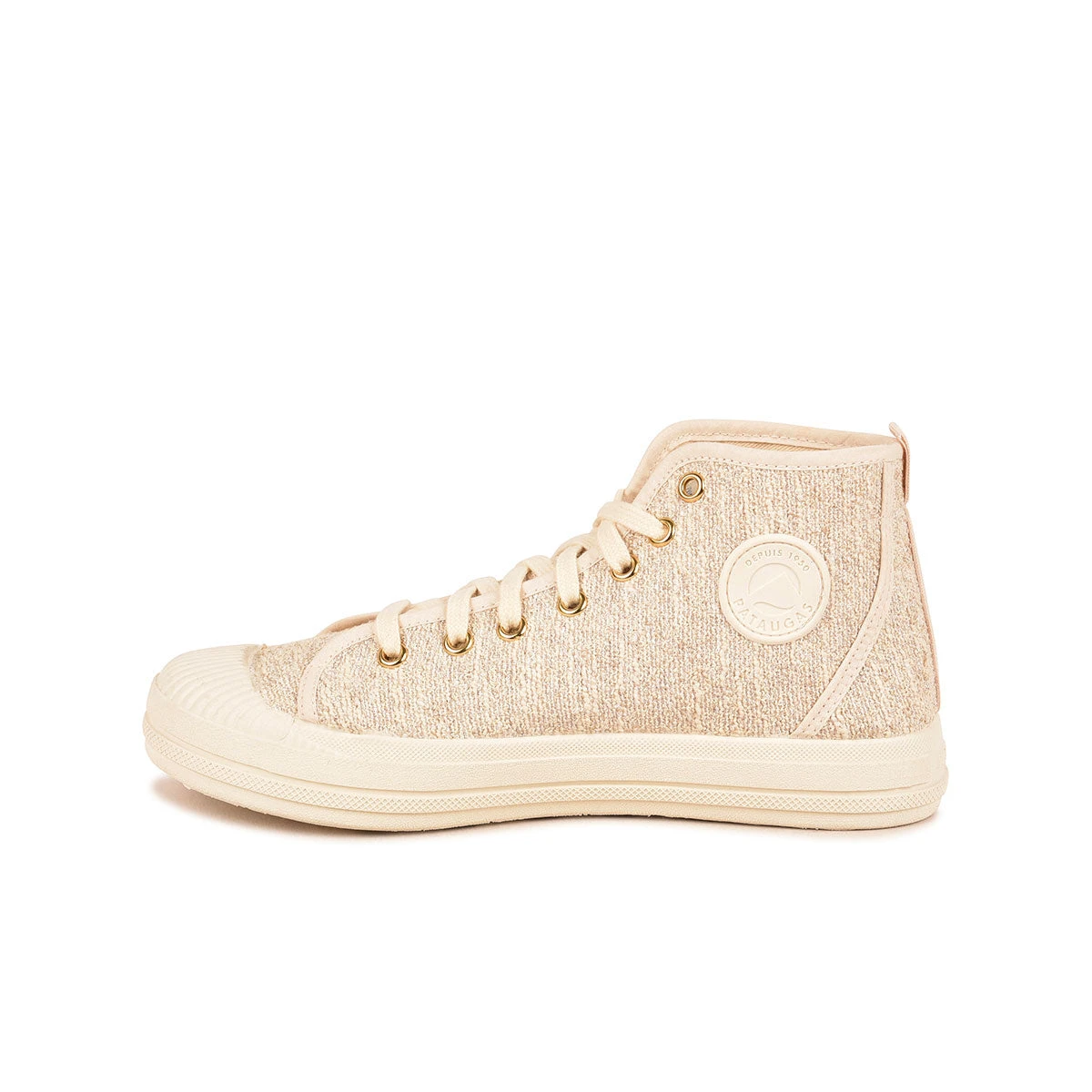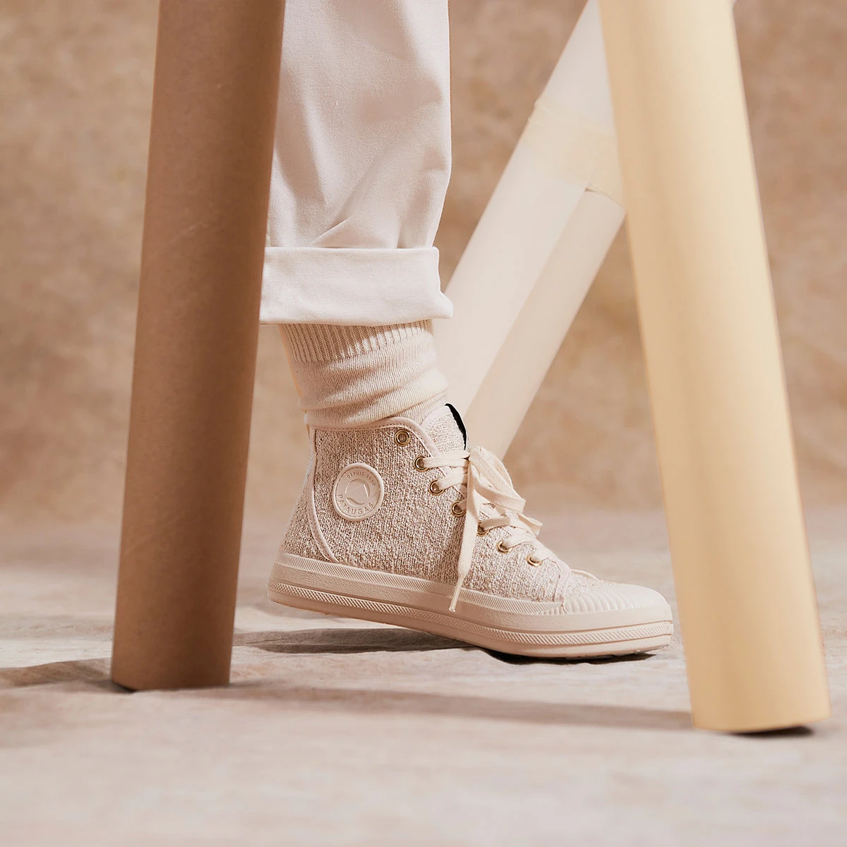 La basket femme ETCHE revient cette saison avec un tout nouveau tissus bouclette raffiné tissé en Espagne, inspiré des codes du design et de l’ameublement, le jeu de fils multicolore délicat apporte douceur et sophistication. Cette basket en coton recyclé est très tendance grâce à sa tige haute et sa semelle striée confortable et légère. C’est une basket montée sur une semelle en caoutchouc naturel ce qui lui permet d’être plus flexible et plus souple. Sa semelle intérieure est amovible ce qui est très pratique si vous souhaitez y placer les vôtres.
