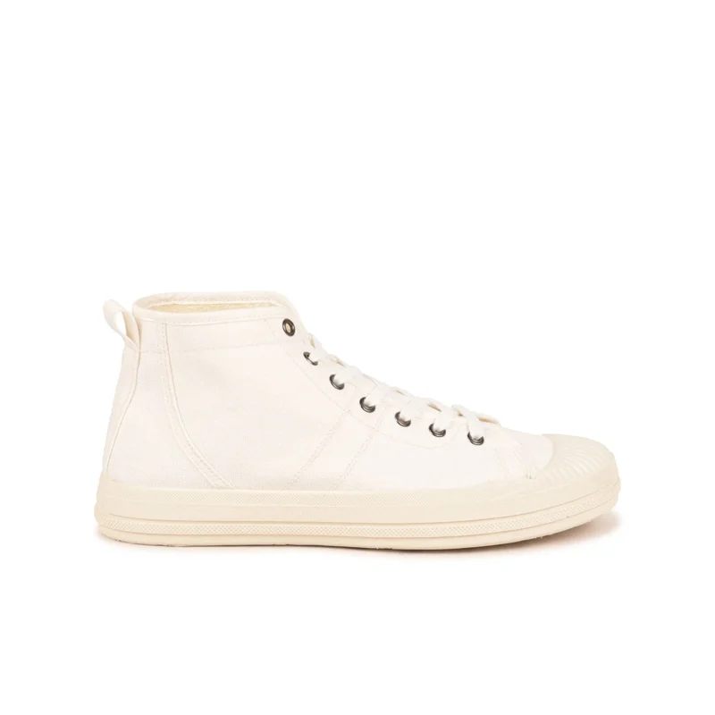 Craquez pour la basket montante femme en toile blanche Etche. Cette chaussure est très lumineuse grâce à sa toile blanche 100% recyclée. C’est une chaussure montée sur une semelle injectée et en caoutchouc naturel. Ce procédé lui permet d’être plus souple et plus légère. Sa toile blanche s’accordera avec toutes vos tenues de saison. Sa semelle intérieure est amovible donc très pratique si vous souhaitez insérer vos propres semelles.