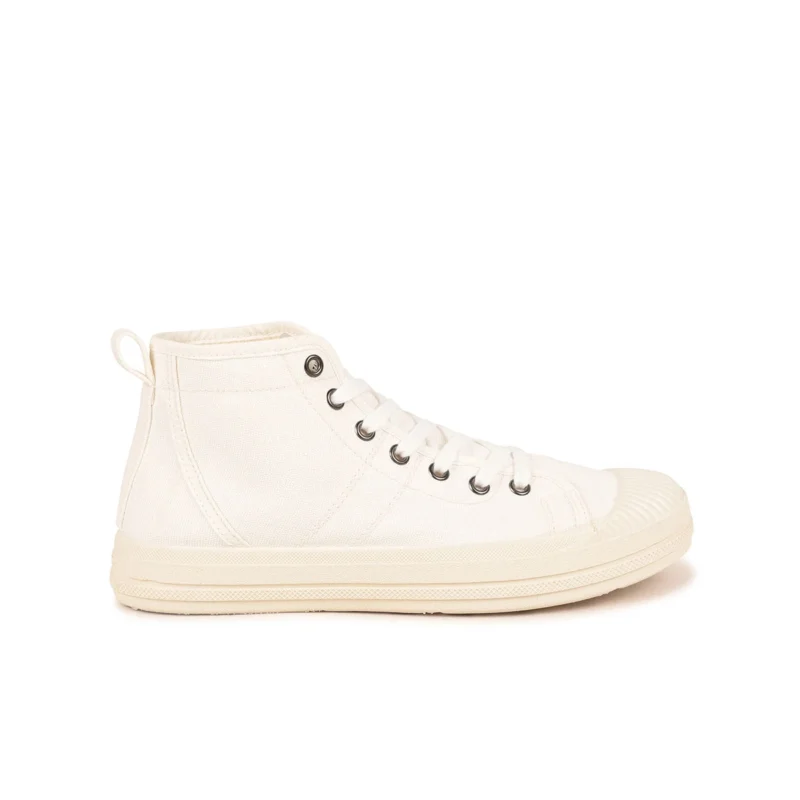 Craquez pour la basket montante homme en toile blanche Etche. Cette basket est très lumineuse grâce à sa toile blanche 100% recyclée. C’est une tennis montée sur une semelle injectée et en caoutchouc naturel. Ce procédé lui permet d’être plus souple et plus légère. Sa toile blanche s’accordera avec toutes vos tenues de saison. Sa semelle intérieure est amovible donc très pratique si vous souhaitez insérer vos propres semelles.