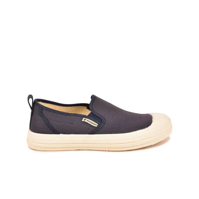 Découvrez la nouveauté de la saison, la version slip-on de notre basket ETCHE, légère, confortable et très facile à enfiler pour parcourir le monde dès l’arrivée des beaux jours. Ce modèle minimaliste, en toile de coton recyclé bleu marine, est aussi facile à chausser qu’à porter au quotidien. Ultra-souple et particulièrement agréable pour vos pieds, elle est entièrement doublée en sergé de coton recyclé et munie d’une semelle intérieure amovible.