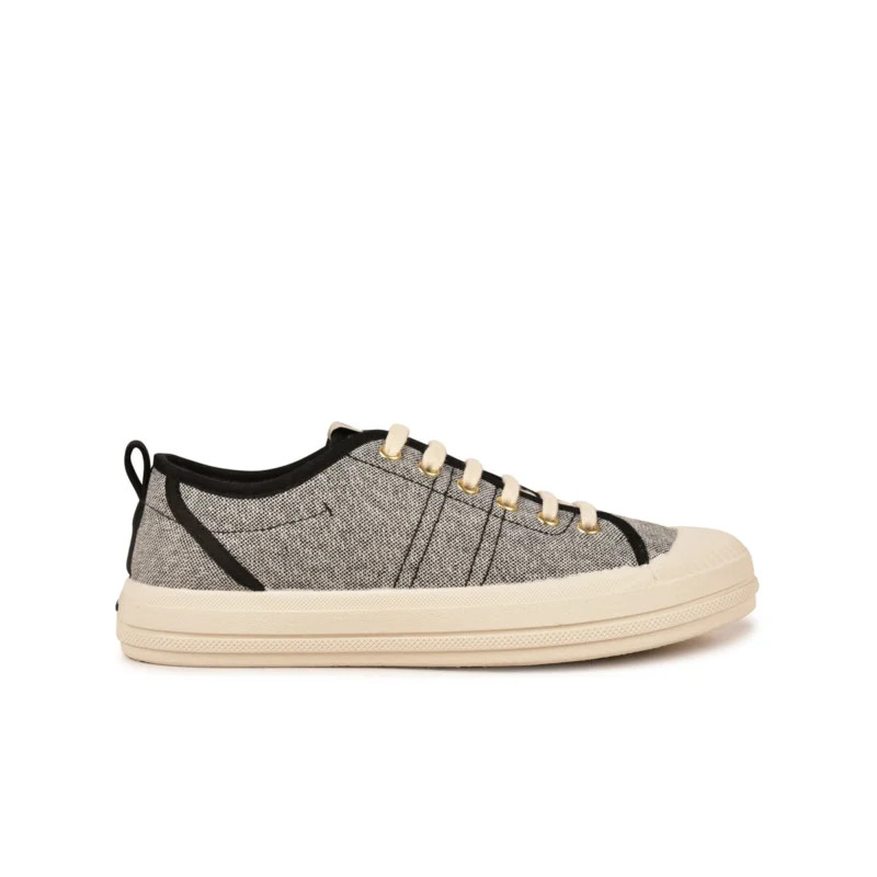 Adoptez sans plus attendre notre nouvel essentiel, la basket femme en toile Etche. Cette basket basse est munie d’une tige en toile lurex noir et doré. Idéale pour la saison estivale, cette chaussure est respirante grâce à sa doublure éponge qui limite la transpiration. Sa semelle injectée en caoutchouc naturel est très souple et très confortable.